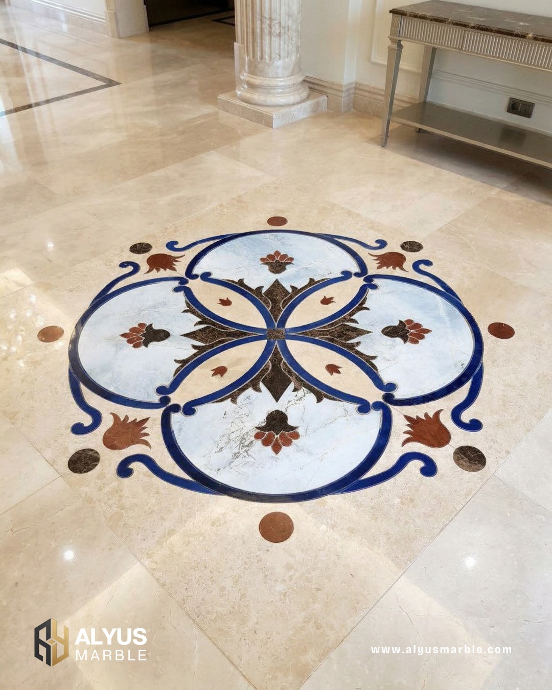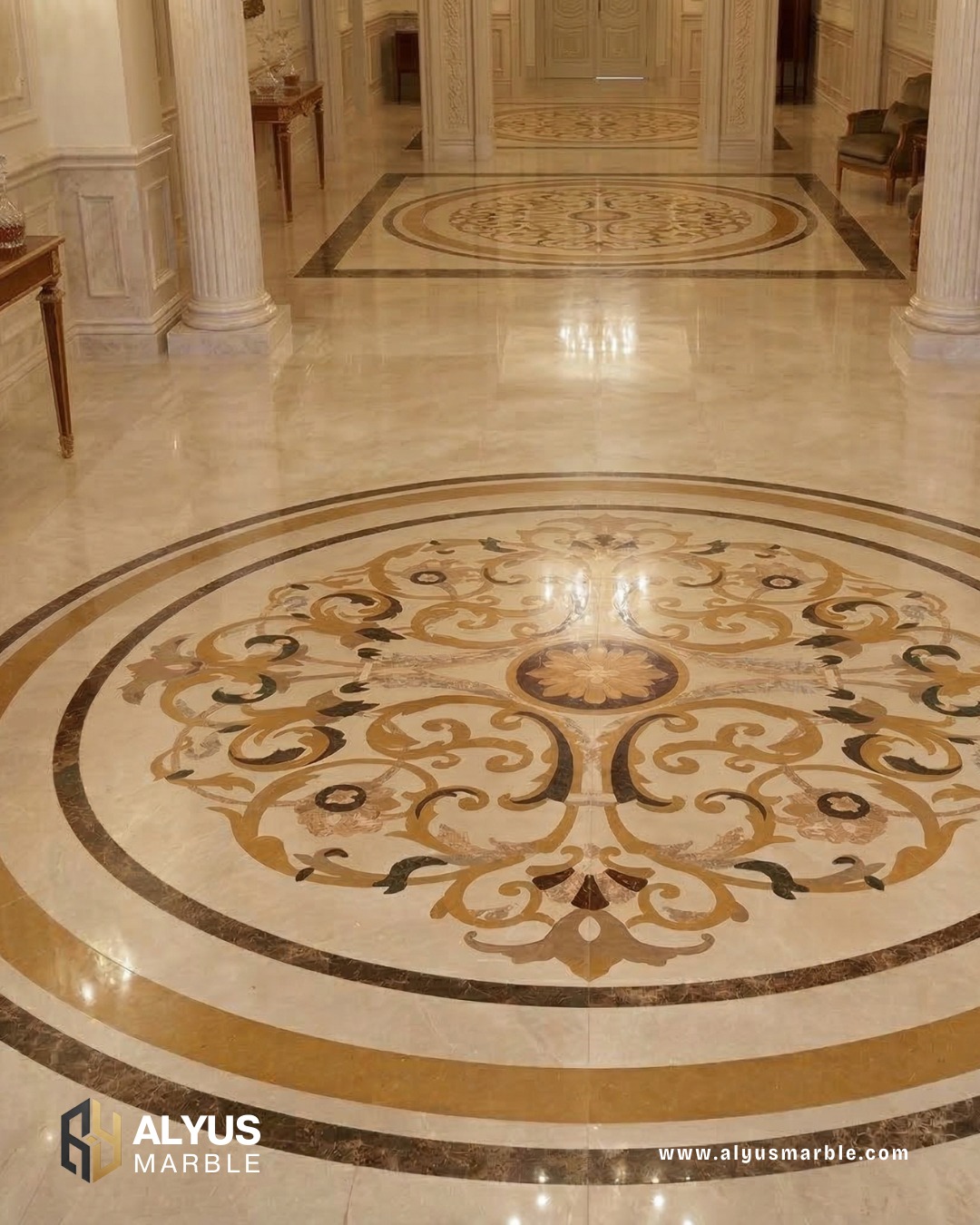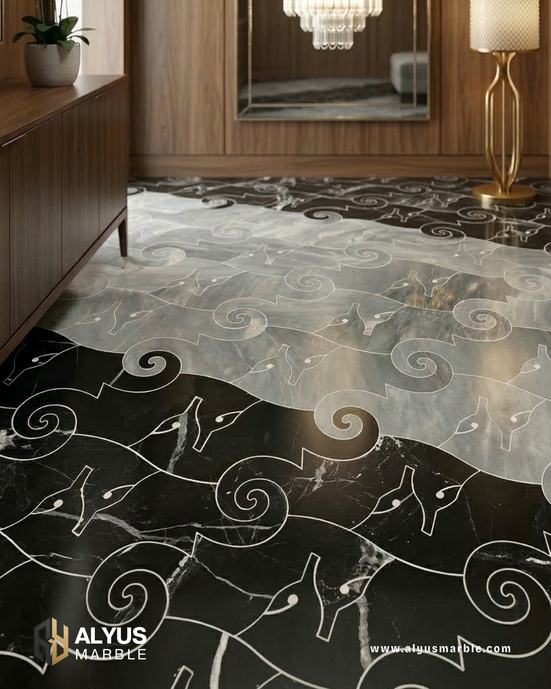 Zeminden Duvara Kesintisiz Bir Estetik Yolculuğu Aura Mosaic Serisi, doğal taşın enerjisini ve Waterjet kesim teknolojisinin hassasiyetini yaşam alanlarınızın her santimetresine taşıyor. Bu koleksiyonun en belirgin özelliği, yüksek dayanıklılığı ve kaymaz yüzey seçenekleri sayesinde hem ihtişamlı duvar panelleri hem de estetik zemin kaplamaları olarak çift yönlü kullanılabilmesidir. Sınırları ortadan kaldıran bir tasarım anlayışı... Aura Mosaic, mermerin doğal zarafetini geometrik bir döngüyle birleştirerek mekanın 'aura'sını değiştiriyor. Özel olarak geliştirilen yapısı sayesinde, bu eşsiz desenleri sadece duvarlarınızda bir tablo gibi sergilemekle kalmayıp, zeminlerinizde de kesintisiz bir sanat halısı gibi kullanabilirsiniz. Ayaklarınızın altındaki lüksü, göz hizasındaki asaletle buluşturan tek çözüm.